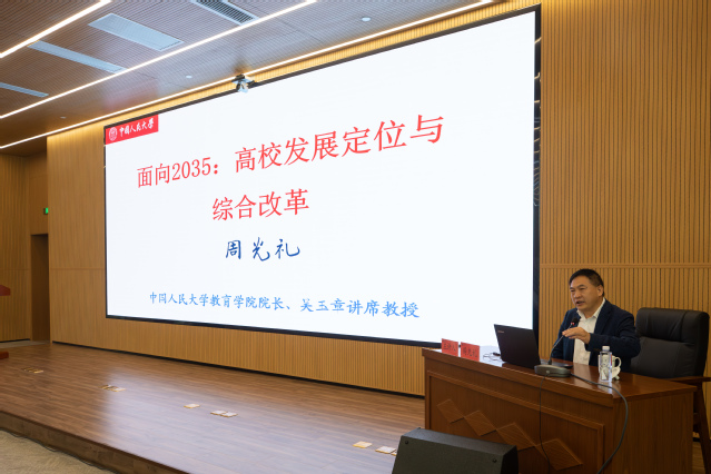 刘继延主持学习会。中国人民大学教育学院院长、评价研究中心主任、吴玉章讲席教授、长江学者特聘教授周光礼作专题辅导报告。周光礼以《面向2035:高校发展定位与综合改革》为题,深入剖析了高等教育在全球面临的诸多挑战,前瞻性探讨教育强国建设战略选择,同时,为高校战略定位与综合改革提供了可行性建议与策略。报告逻辑严谨、内容丰富,既有理论高度,又有实践深度,为学校在高等教育领域的探索与实践提供了宝贵的参考和指引,也为学校制定“十五五”规划提供了有力指导。(记者 李银霞 通讯员 王亮)
