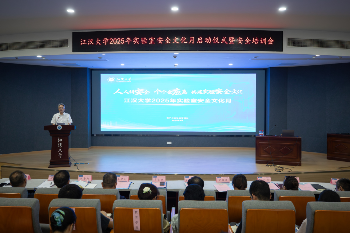 江大新闻网讯 我校2025年“实验室安全文化月”启动仪式暨培训会于近日在图书馆报告厅举行,武汉大学实验室与设备管理处处长王建波教授应邀来校作首场培训报告。副校长贾永胜出席启动仪式并讲话。