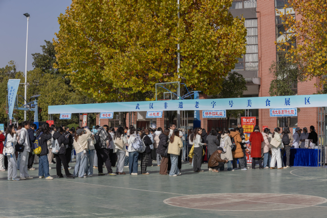 活动当天,我校7个食堂的展台人气高涨。食堂师傅们精心准备的桂花米酒汤圆、冰糖葫芦、烤串等食品吸引师生驻足。另一边的非遗文化展区,学生们也排起长队,在扬子江食品、扬子江乳业、德华楼、小桃园鸡汤、老谦记豆丝和熊太婆原汤水饺的展台前,争相品尝极具汉味特色的美食。老谦记传统豆丝制作技艺第三代传承人沈祖学准备了600份豆丝,全部被免费领取。“豆丝制作技艺传承至今已有百余年历史,去年获评省级非遗项目”,沈祖学介绍。来自湖北荆州的大一新生梅轶秋开心地说:“文明餐桌进校园宣传活动将美食市集搬进校园,让外地大学生就近体验到原汁原味的武汉美食文化。”